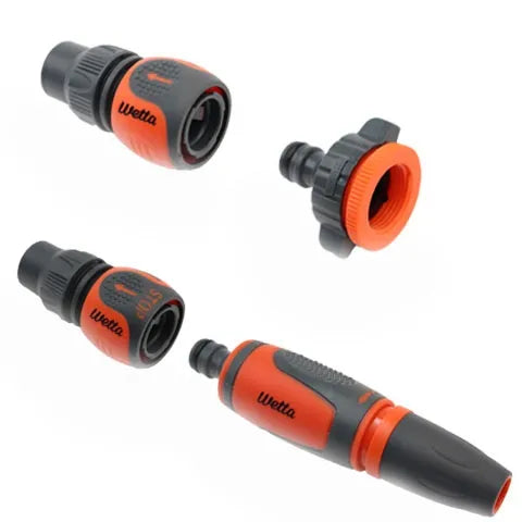 The Wetta Hose Nozzle Watering Set provides everything you need for versatile and efficient garden watering. This set includes a durable hose nozzle with multiple spray patterns, connectors, and fittings to attach quickly to your garden hose—making watering your plants, lawn, and garden easy and effective.