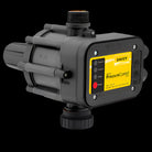 Press Control controllers are electronic pressure switches with integral dry running protection and non-return valve. They will start a pump immediately when a valve in the pipe system is opened and stop the pump immediately when the valve is closed, or if the pump runs dry. They can be fitted directly to any surface mounted pump, or in the delivery line of any submersible that operates within the rated pressure and flow specifications. Suitable for pumps with 240v motors that do not exceed 1.5kW. The column of water between the switch and the highest outlet must not exceed 15 metres (1.5bar), otherwise the system pressure may not fall to the pre-set cut in pressure and the system will not restart. They must be operated vertically. This control is pre-set at factory, so no additional programming is required/possible on installation. Press control TIME has an auto reset fitted.