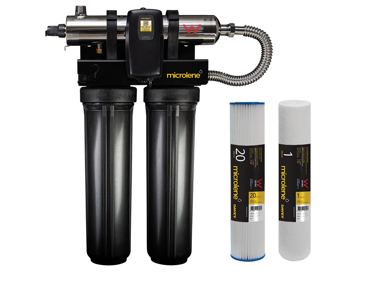 Microlene's proven three-stage filtration and ultraviolet disinfection systems can provide continuous clean and safe water from your rainwater tanks. Applications Filtration and disinfection works with both rainwater AND Bore or surface water – subject to water quality Suits small to medium home's potable water supply.