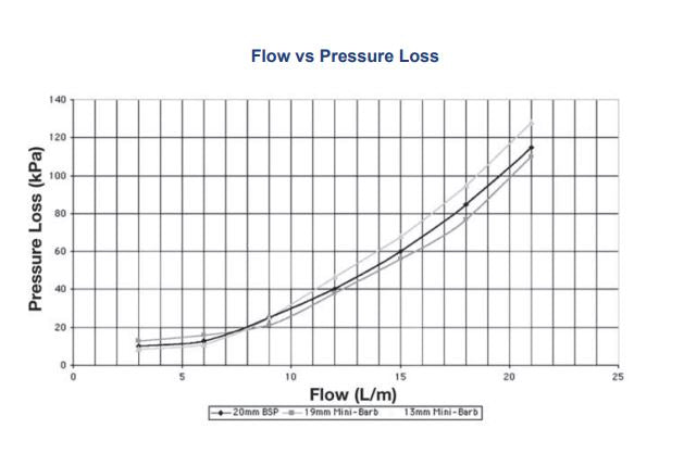 - Working pressure range 20-1400kPa Max flow 38lpm