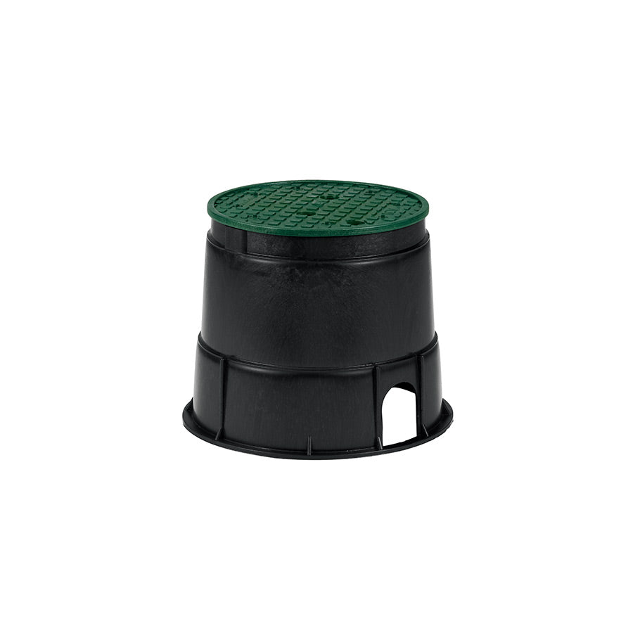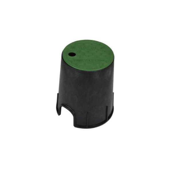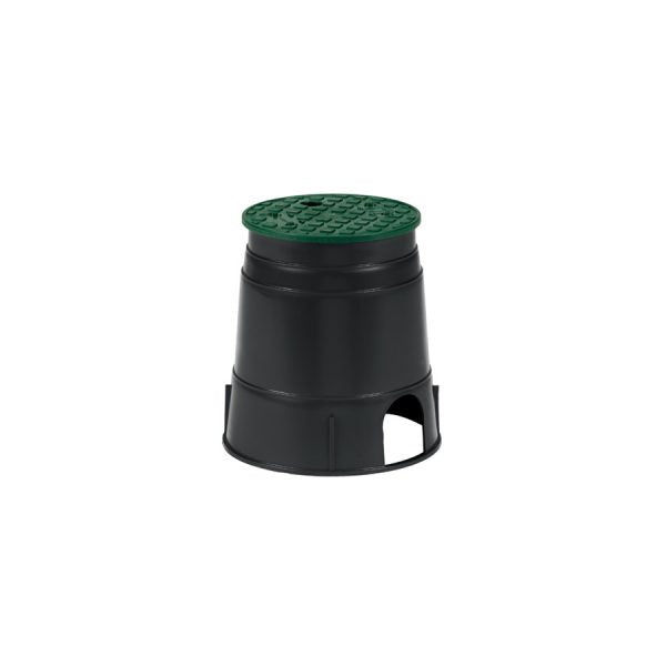 This valve box is made of durable plastic that is designed to resist damage from weather, impact, and UV radiation. It comes with a green lid that blends seamlessly with outdoor surroundings. This valve box provides protection and easy access to irrigation valves, water mains, and other utilities buried underground. It is easy to install and maintain, making it a reliable choice for any outdoor application.