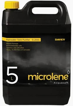 The Davey Microlene Acquasafe 5 Litre pack is ideal for larger rainwater tanks or households wanting multiple treatments on hand. This chlorine-free water disinfectant uses stabilised hydrogen peroxide to safely kill bacteria, viruses and pathogens, while leaving no taste, colour or odour in your water. One 5 litre container treats up to 75,000 litres of water, making it a cost-effective solution for rural homes, lifestyle blocks, or commercial tank setups.