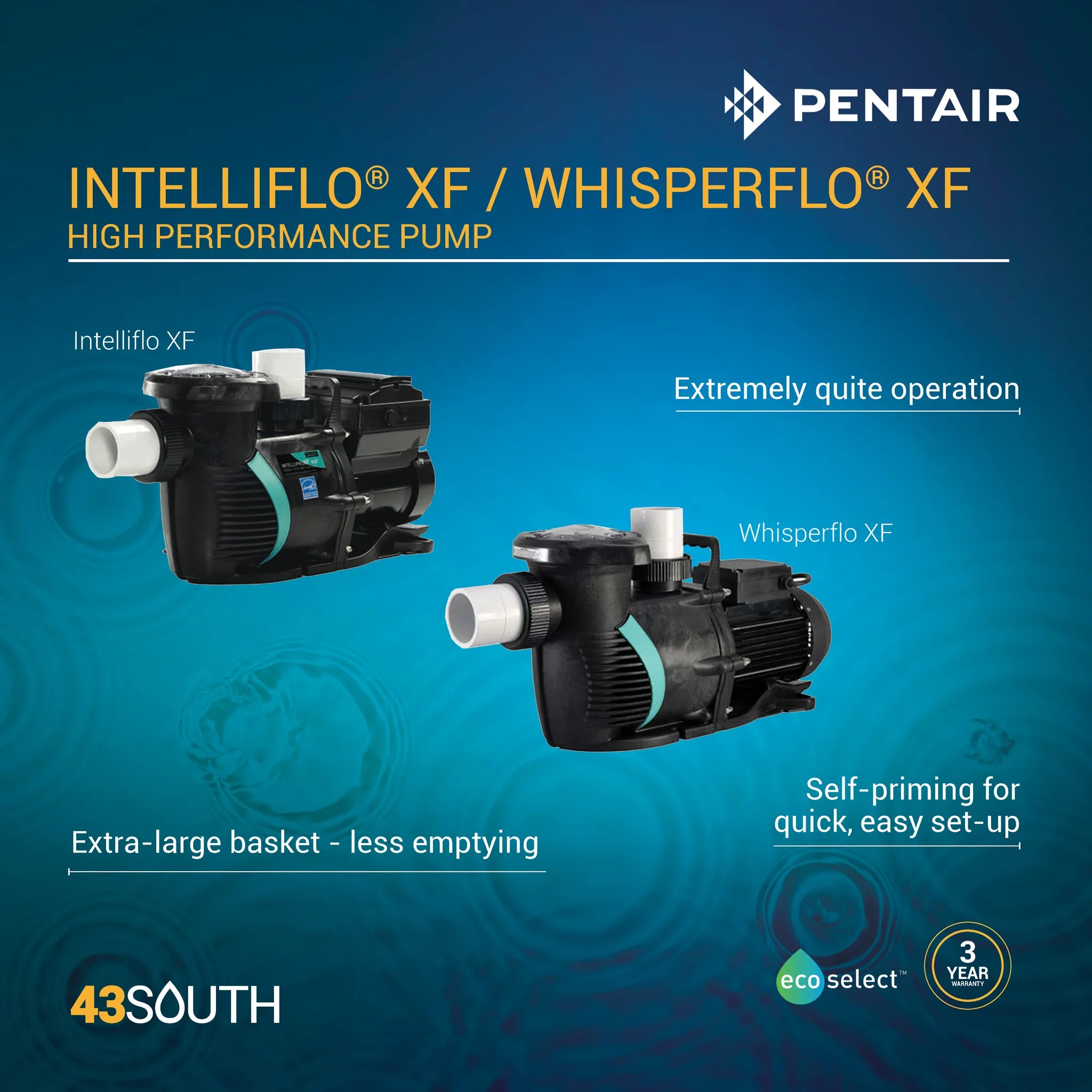 The WhisperFlo XF pump bring best-in-class energy efficiency, near-silent operation and ultra-dependable performance to high-capacity pool pumps. Driven by innovation, when we developed this breakthrough pump, we relied on today’s computer-aided design and manufacturing (CAD/CAM) plus computational fluid dynamics (CFD) to deliver the best WhisperFlo pump we’ve ever made. The reward for our hard work is the WhispFlo XF pump with energy efficiency that’s unsurpassed by any pump in its class. A higher standard of performance, the WhisperFloXF pump are the most efficient, technologically advanced high-capacity pump ever to wear the venerable Pentair badge. With outstanding performance from both a maximum-flow and mean-flow perspective, it’s perfectly suited for small commercial pools as well as larger residential pools.